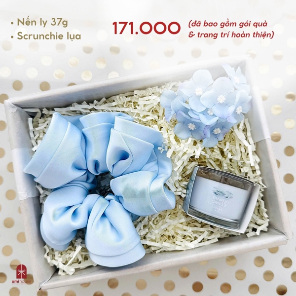 *Giá set quà đã bao gồm gói quà và trang trí hoàn thiện, bạn vui lòng inbox để Omi House tư vấn thêm hương nến, màu scrunchies và giấy gói nhé!